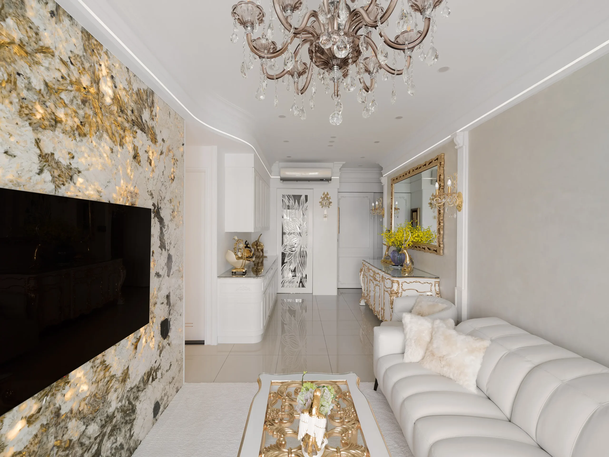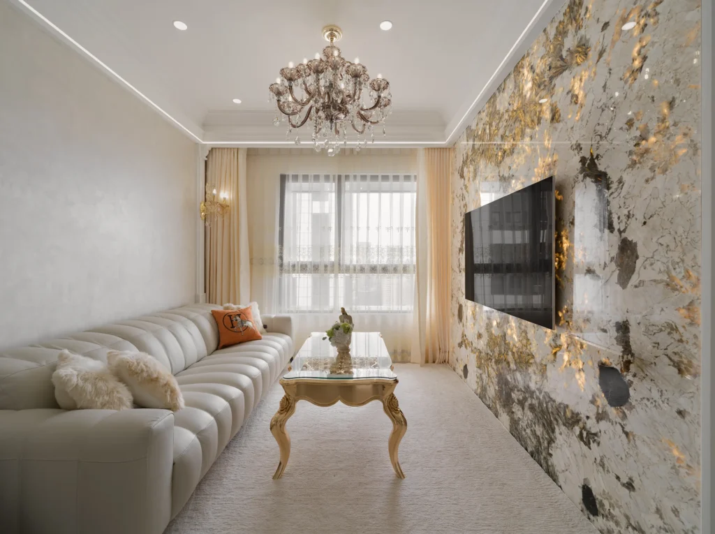 4. 電視牆透光石設計,線路隱藏整合