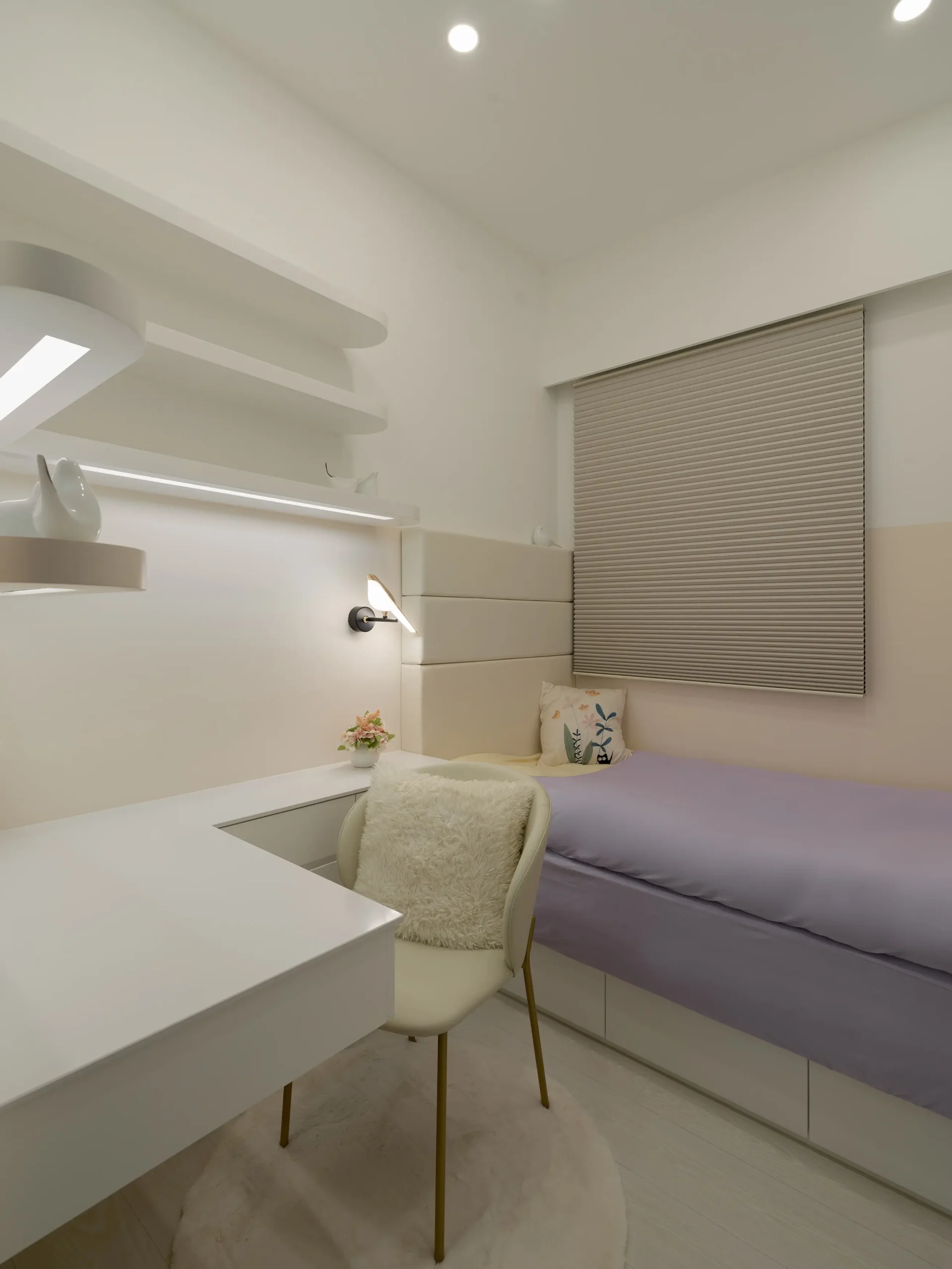 • 沙發與床位重調方向,避開壁刀並爭取最佳採光。