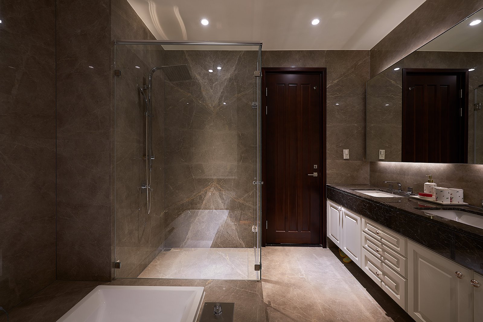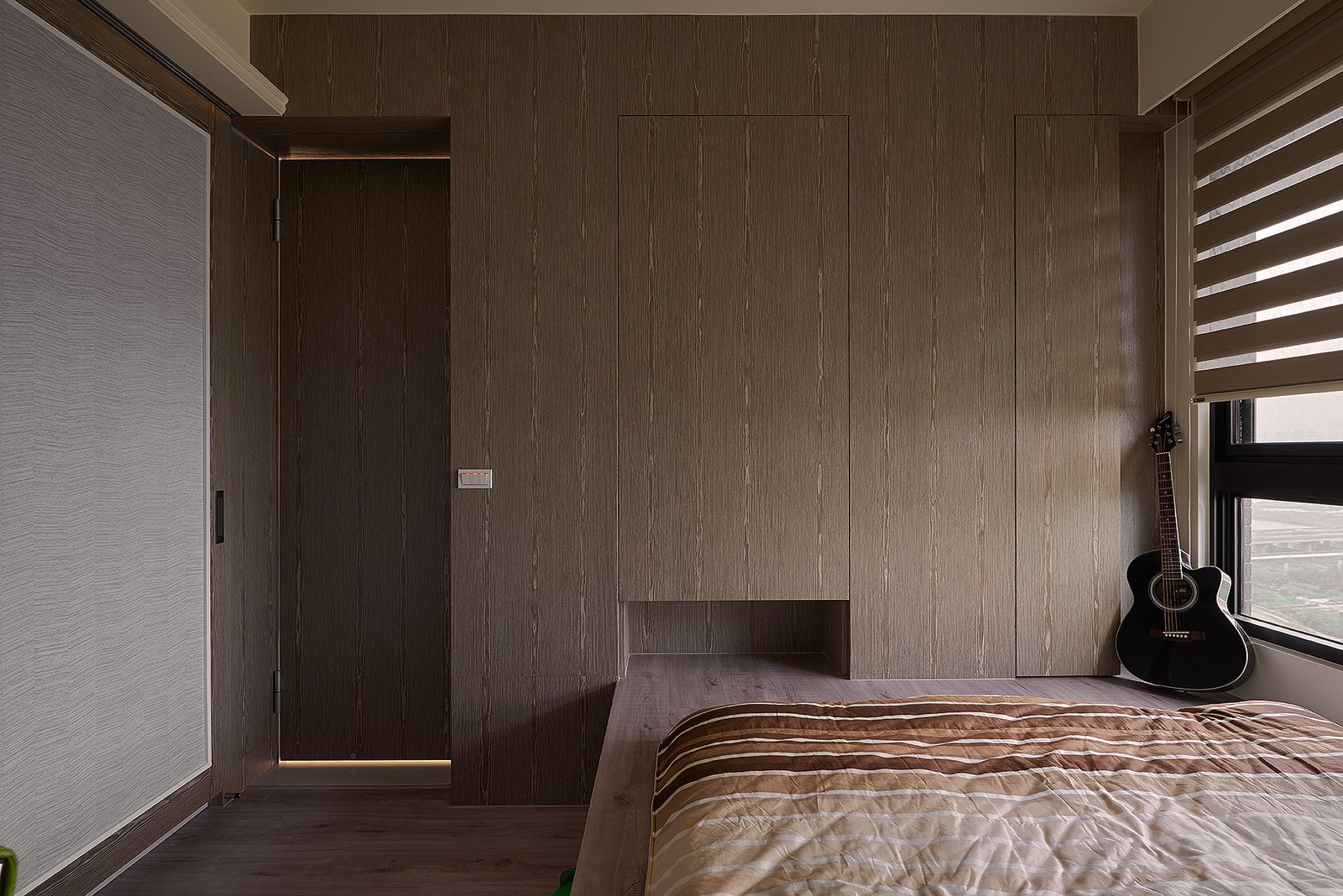 拆除主臥與男孩房之間的牆面,延展出獨立吧台區與主臥更衣間,讓空間更具流動感與完整機能。