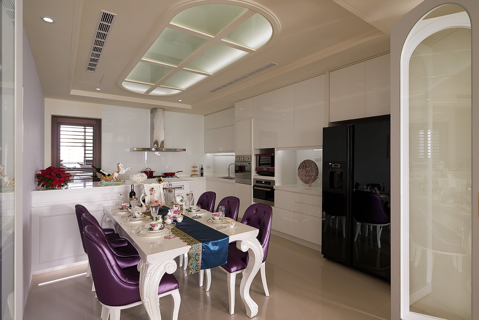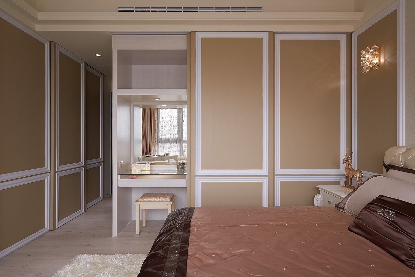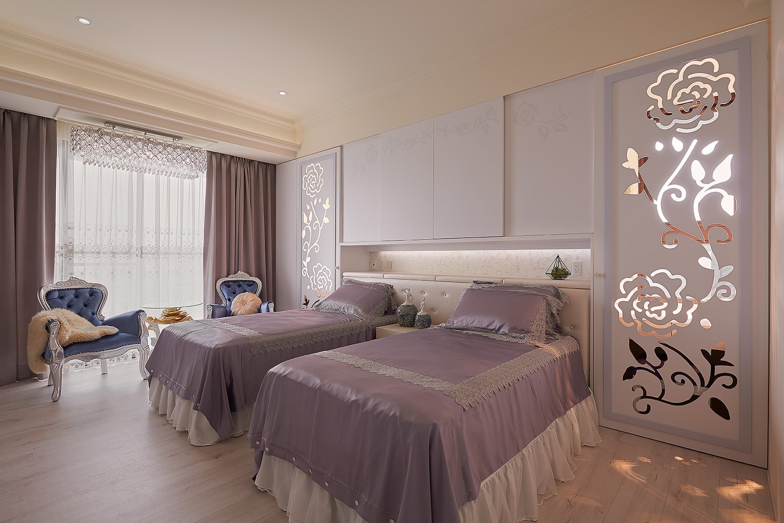 以新古典為主軸,各空間融入不同風格語彙:男孩房簡約、女兒房日式、吧台輕北歐,展現多元美學下的統一風格。