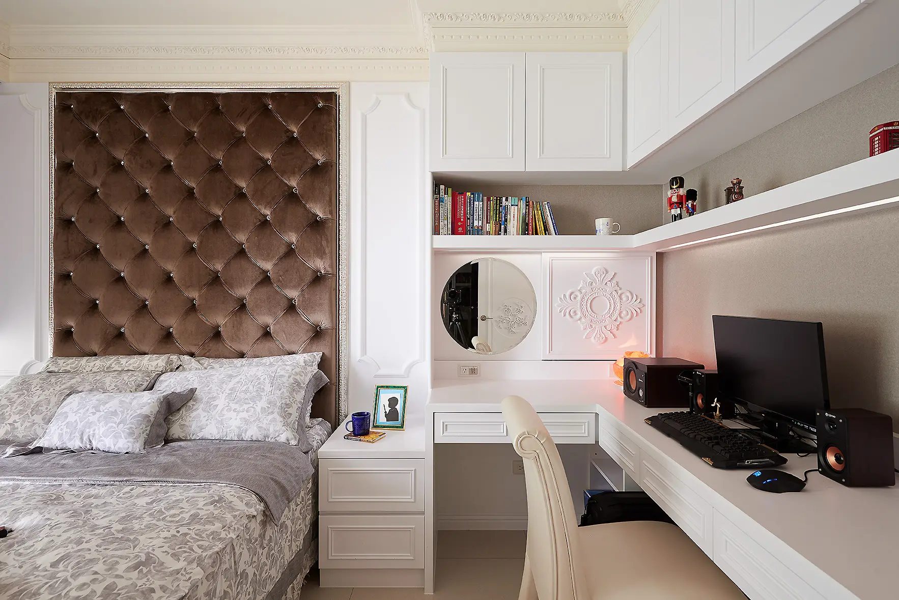 書房兼客房的複合空間,格局與櫃體深度皆量身調整,提升坪效。